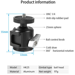 Enhance the versatility of your tripod with the BEXIN HK25 Aluminum Alloy Cold Shoe Tripod Adapter Ball Head. This professional mini ball head provides easy and quick adjustments for your camera, allowing you to achieve nearly any position effortlessly.