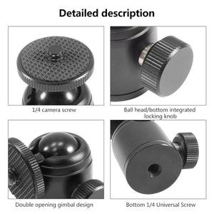 The locking ball head enables quick and effortless positioning of your camera, allowing you to loosen the knob and smoothly rotate, tilt, and pan your device. Weighing just 50g, this lightweight and portable ball head is the perfect travel companion for photographers on the go.