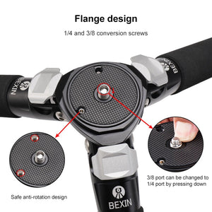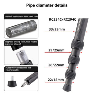 - Tripod tube is made of high-density carbon fiber, reducing weight and ensuring stability.