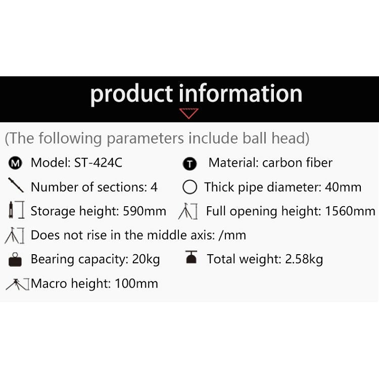 Whether you're a professional photographer or a passionate enthusiast, the BEXIN ST424C Rugged Camcorder Photographic Carbon Fiber Big Tripod is the perfect companion to elevate your photography game. Please note that slight variations in dimensions and color may occur due to manual measurement and different display settings.