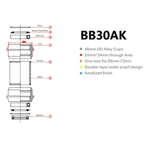 BIKERSAY BB30AK - Aluminum Bicycle Bottom Bracket with Excellent Durability
