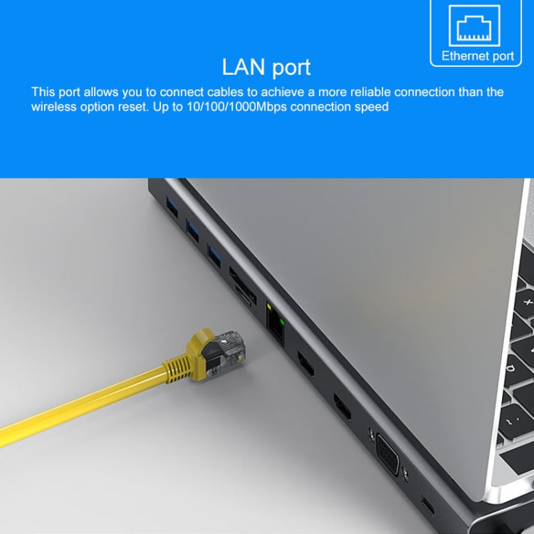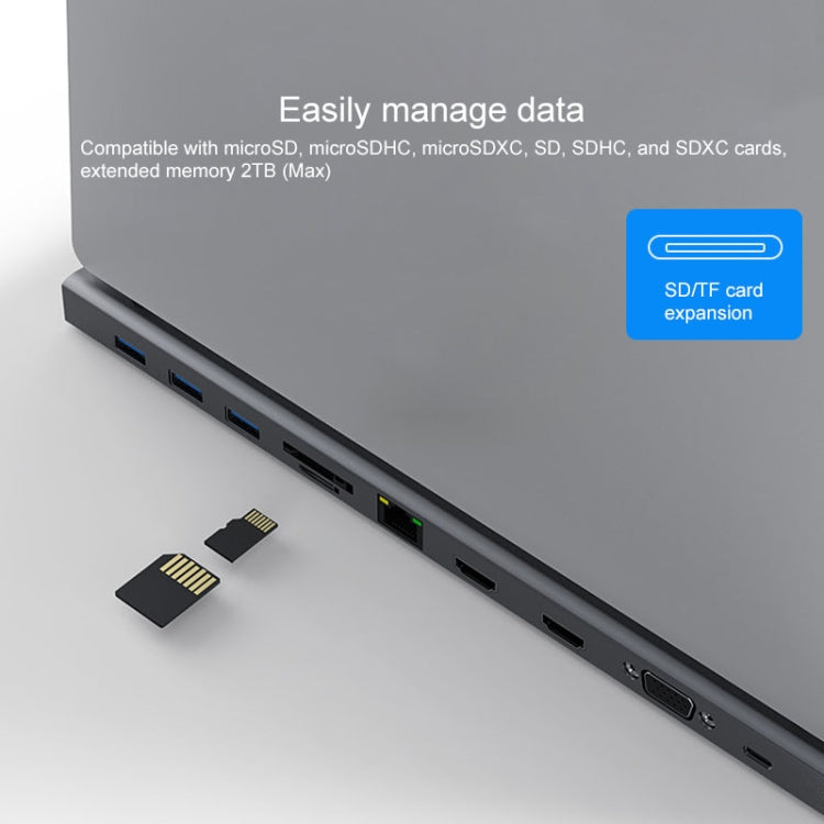 - 11-in-1 Interface: Type-C PD, USB 3.0*3, Ethernet interface, SD card slot, TF card slot, VGA, HDMI*2, 3.5mm audio interface