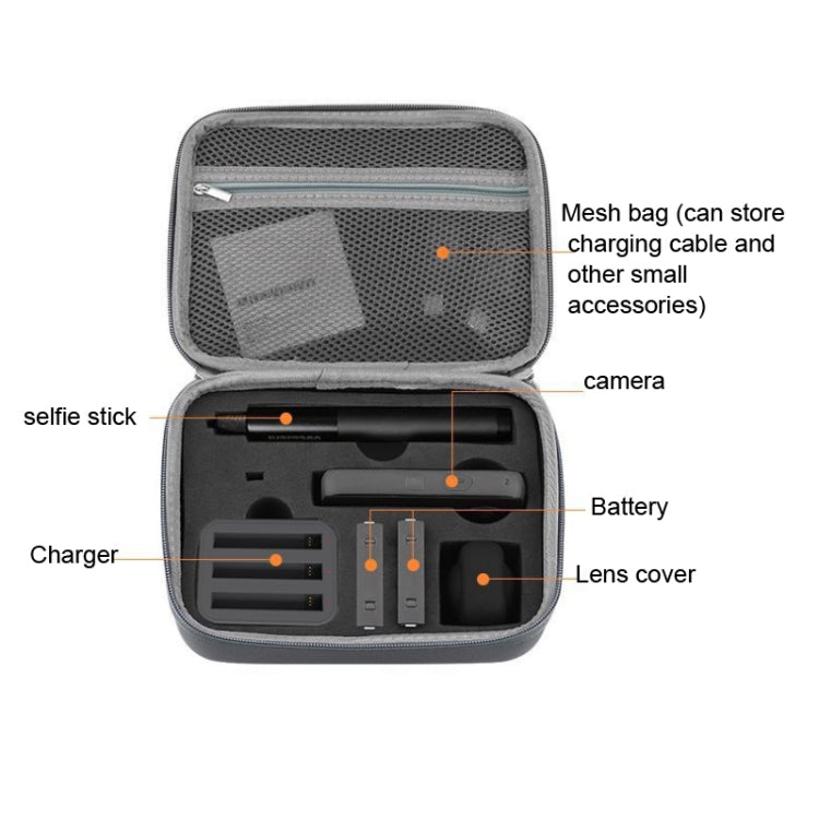 Keep your Insta360 ONE X3/X2 panoramic camera and accessories safe and organized with this stylish and functional storage bag in gray.