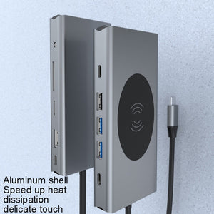 Experience versatile connectivity and seamless functionality with the BX13V 13 In 1 Type-C Docking Station Wireless Charging Hub. Here's what sets it apart: