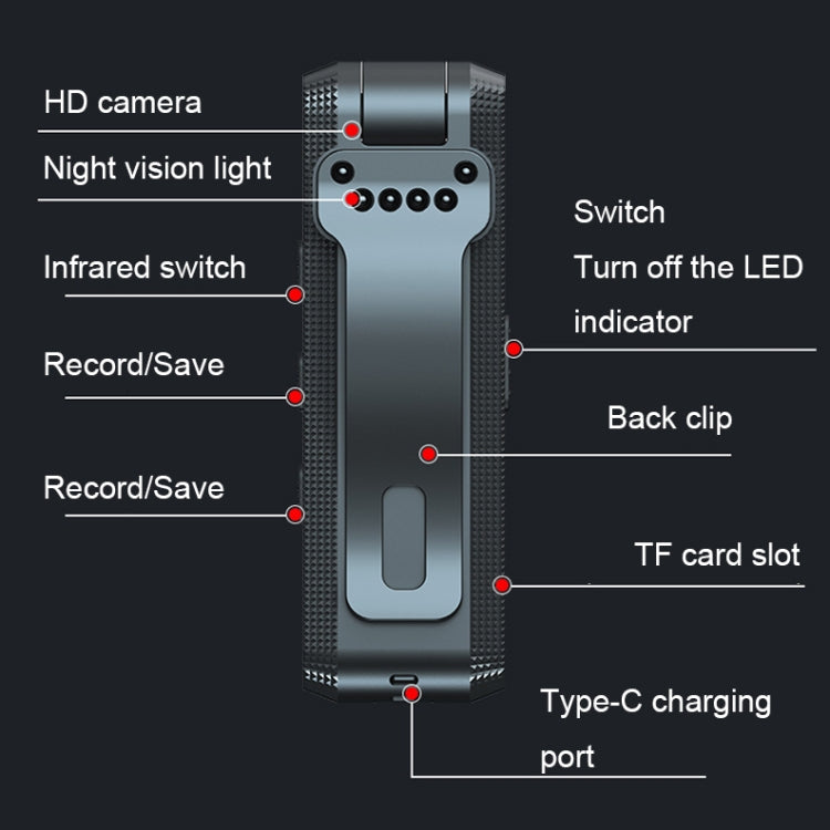 - Anti-shake sports back clip design for easy fixing and motion detection video