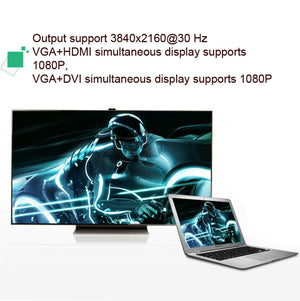 - Enhanced Resolution: Enjoy superior display quality with support for resolutions up to 3840x2160@30HZ with single HDMI output, or 1080P for VGA+HDMI and VGA+DVI simultaneous displays.