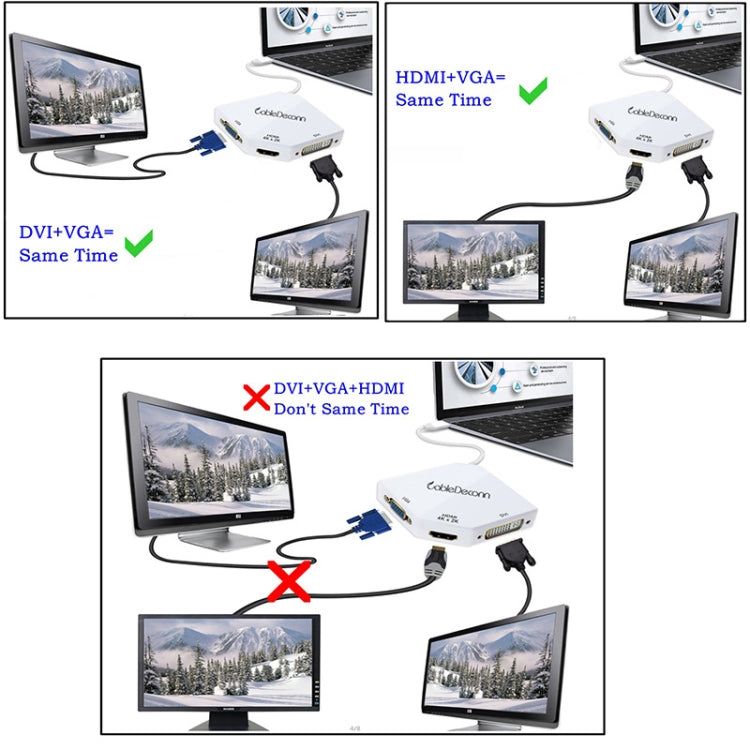 Cabledeconn F0102 3 in 1 Type-C to VGA / HDMI / DVI Adapter (White)