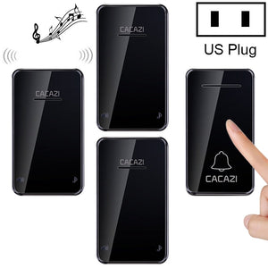 CACAZI FA8 Self-Powered Wireless Doorbell with Three Receivers, Long Range and Customizable Ringtones - US Plug (Black)