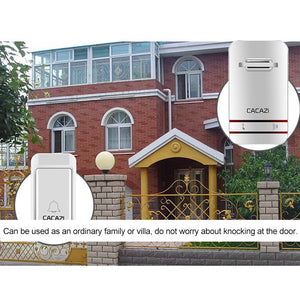 CACAZI V027G Self-Powered Wireless Doorbell with Three Receivers and UK Plug