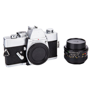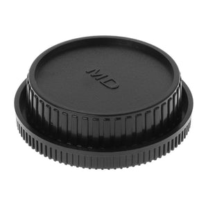 Keep your Minolta MD camera safe and secure with this protective camera body cover and rear lens cap. Made of tough and durable plastic material, this set provides double protection for your camera.