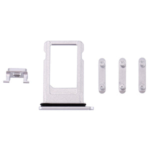 Upgrade your iPhone 8 Plus with this high-quality silver card tray, volume control key, power button, and mute switch vibrator key. Enjoy seamless functionality and a sleek look with these replacement parts.