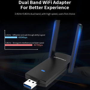 High Power Dual Frequency USB Wireless Network Card - 1200Mbps