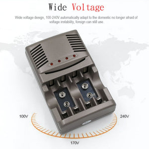DC 100-240V 4 Slot Battery Charger for AA & AAA & 9V Ni-MH Battery, US Plug