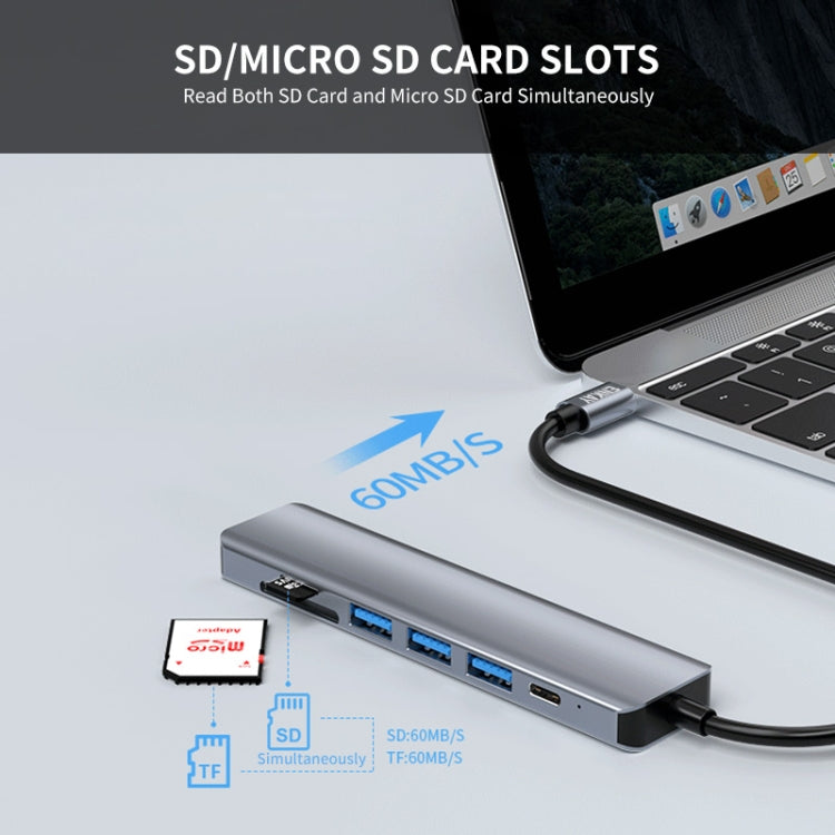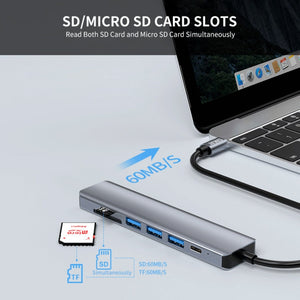 ENKAY Hat-Prince 7 in 1 Type-C Docking Station Adapter with 4K HDMI, Quick Charge, and SD/TF Card Reader