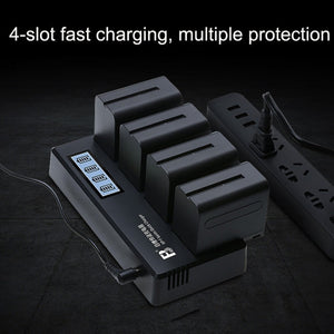 Fast Charger for Sony NP-F970/NP-F960 Batteries with 4-Slot Design and Worldwide Applicability