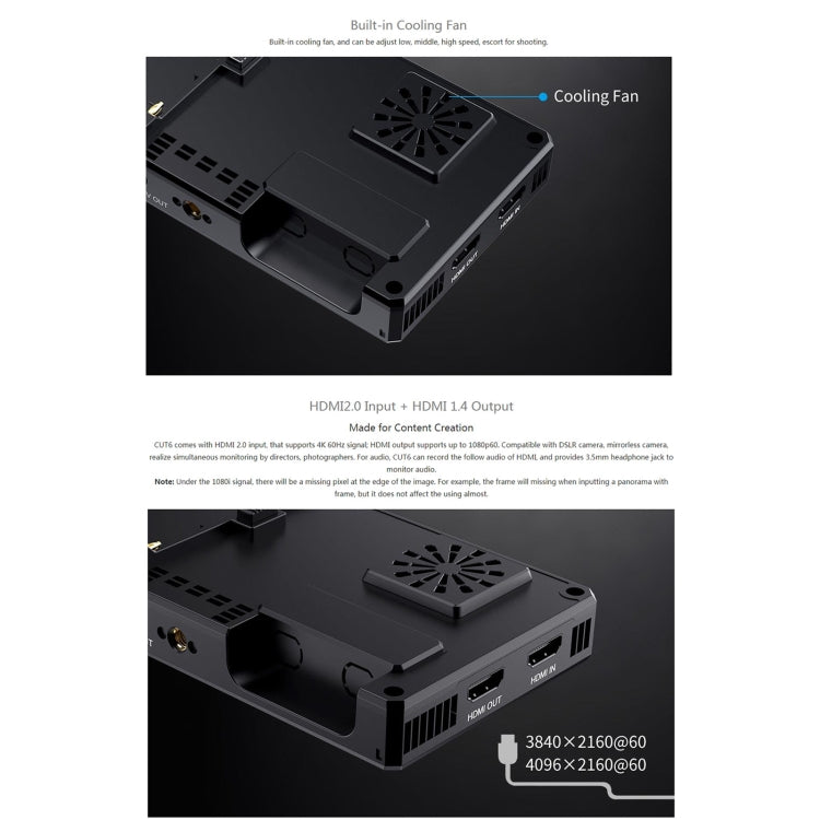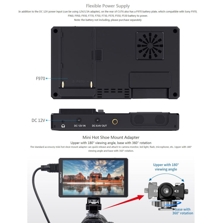FEELWORLD CUT6 6-inch Touch Screen Recorder Monitor FHD IPS 4K HDMI Camera Field Monitor (Black)
