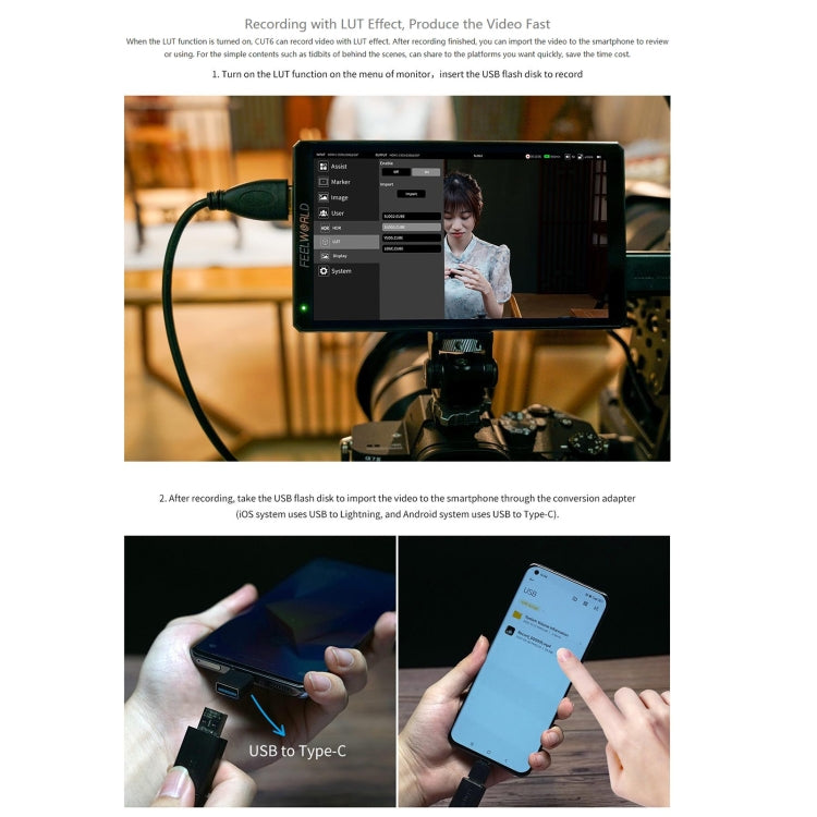 Take advantage of the wide array of functions offered by the FEELWORLD CUT6 including support for 3D LUT, Waveform, HDR, Histogram, Focus Assist, Zebra Exposure, and more to enhance your filming capabilities.