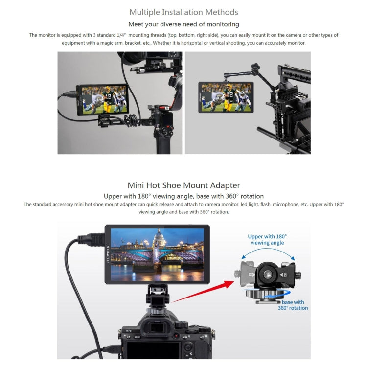 Upgrade your shooting setup with the FEELWORLD CUT6S 6-inch Touch Screen Monitor Recorder. This innovative monitor offers a host of features to enhance your shooting experience, providing flexibility, precision, and efficiency.