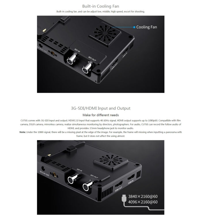 6-inch Touch Screen Monitor Recorder FHD IPS 4K HDMI 3G-SDI Camera Field Monitor (Black) by FEELWORLD CUT6S