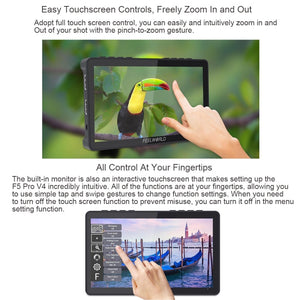Upgrade your camera setup with the FEELWORLD F5 Pro V4 6 inch Touch Screen DSLR Camera Field Monitor. This innovative monitor offers a wide range of features to enhance your shooting experience, from high-resolution display to advanced auxiliary power options.