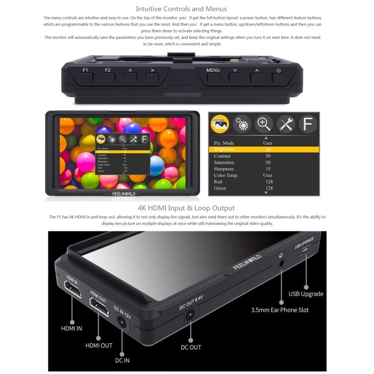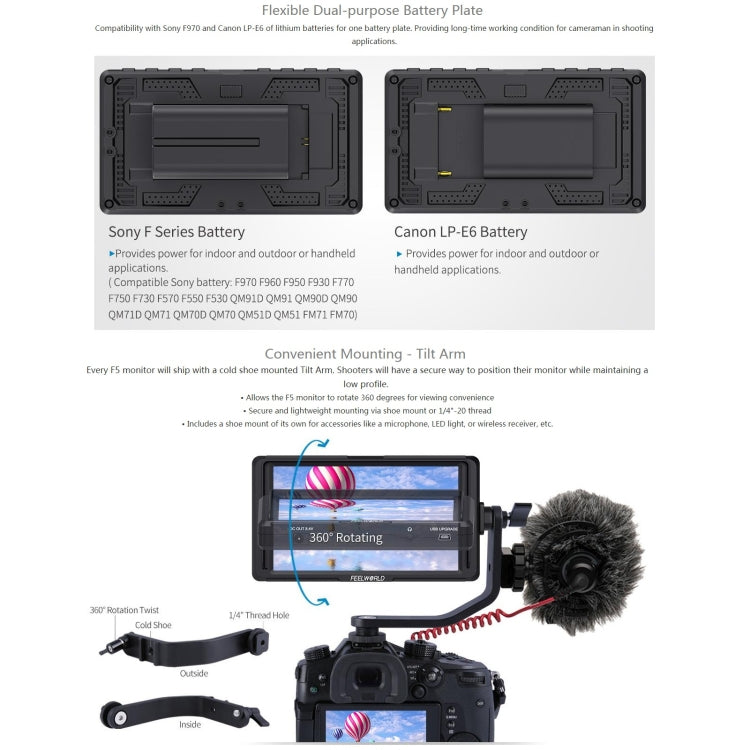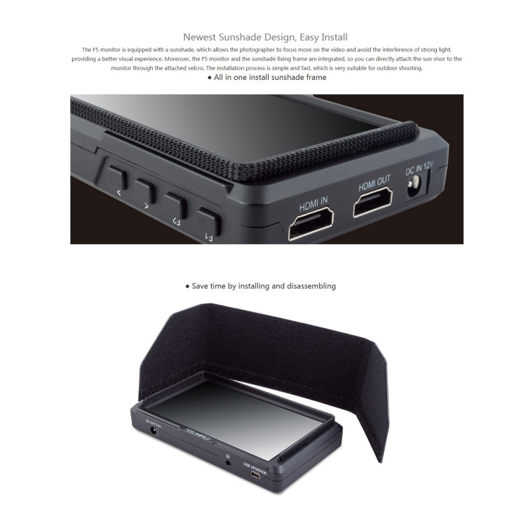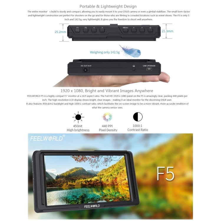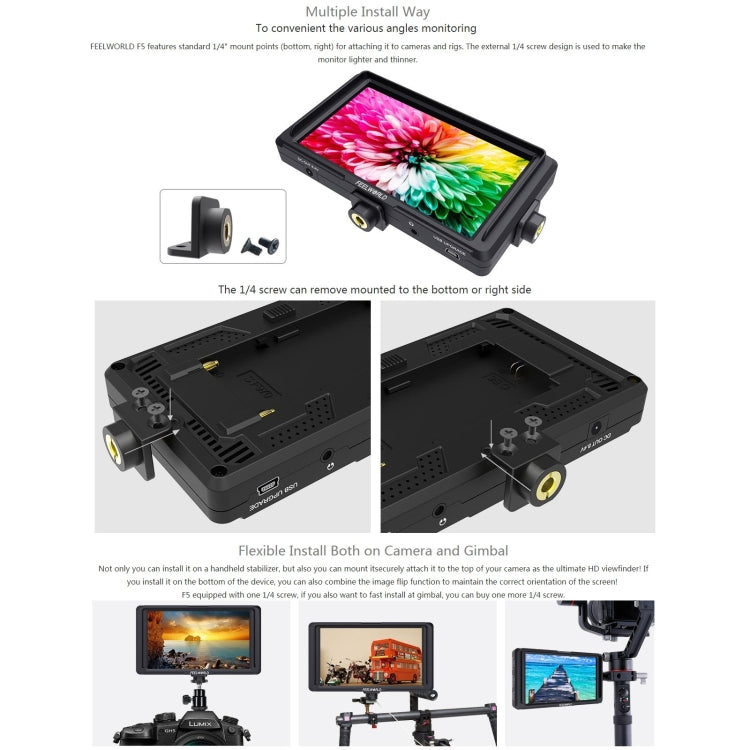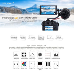 FEELWORLD F6S 5.0 inch IPS Screen DSLR Camera Field Monitor with 1920x1080 Full HD Resolution and 4K HDTV Input/Output Support