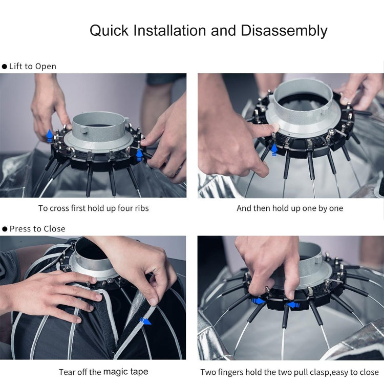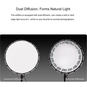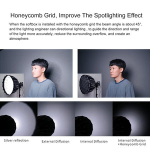 High-Reflective Coating and Soft Light Material: The softbox is equipped with high-reflective coating and soft light material, ensuring a more uniform soft light effect.