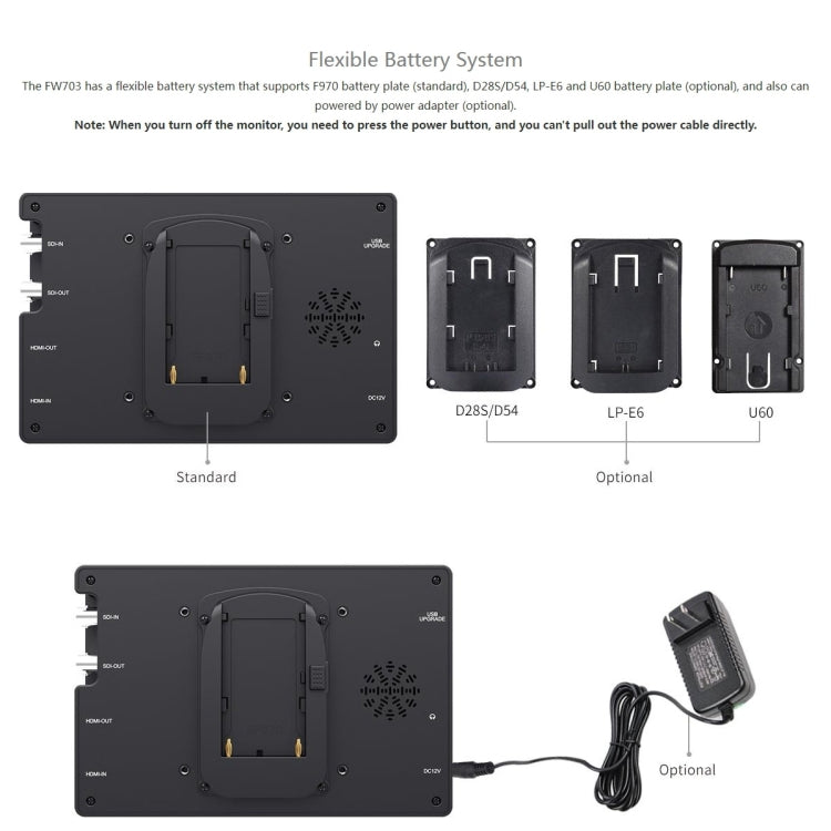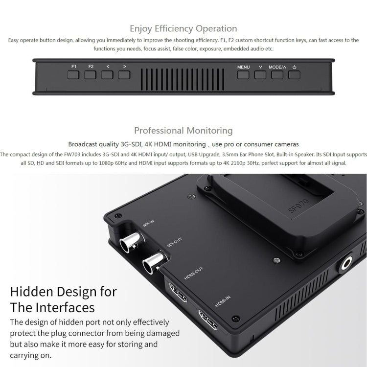 FEELWORLD FW703 7 IPS Screen Camera Monitor with 1920x1200 Resolution and 4K HDMI/SDI Connectivity