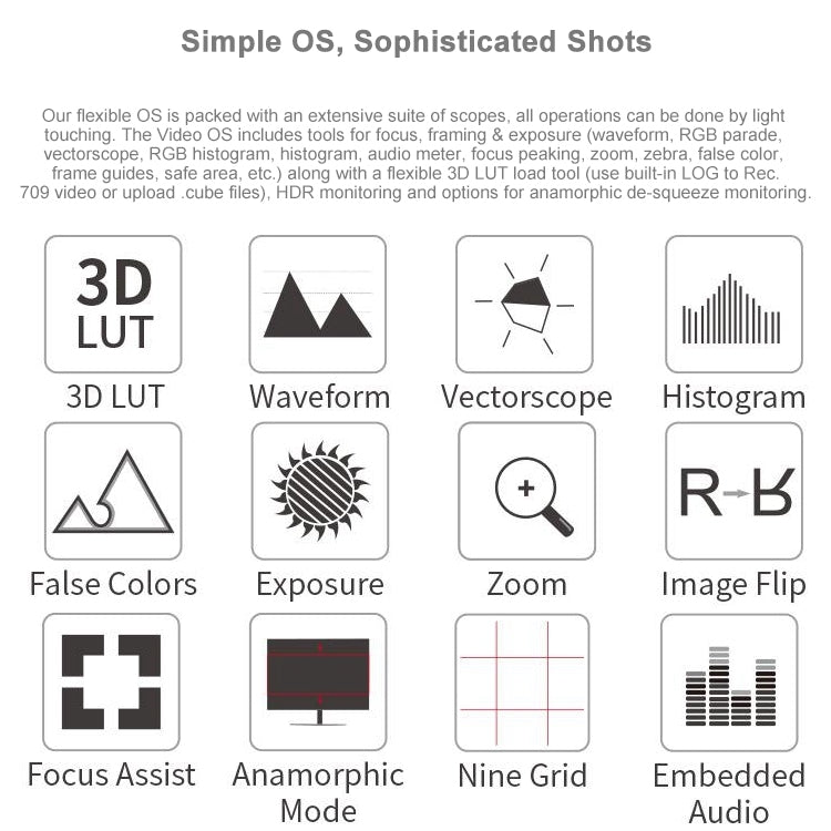 - Built-in HDR LUT table support and waveform monitoring function