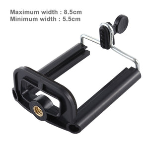- Automatic Elastic Stretch: The phone bracket automatically adjusts to clip phones with 5.5-8.5cm width, while the standard 1/4" tripod hole allows compatibility with any tripod stand
