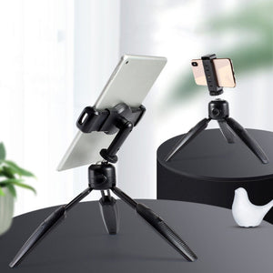 Upgrade your live streaming and content creation experience with our Foldable Tripod Desk Mount Telescopic Live Stand. This versatile stand comes with a Tablet PC & Phone Clamp, designed to support a wide range of devices, making it perfect for cameras, smartphones, and tablet PCs.