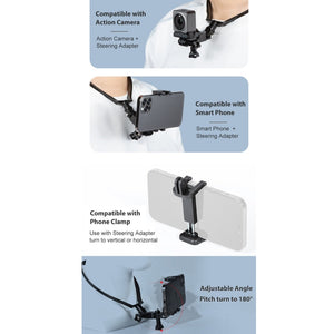 - Package includes: neck bracket, mobile phone bracket, silicone anti-lost cord, 1/4 adapter, M5 short screws, and non-directional extension connectors