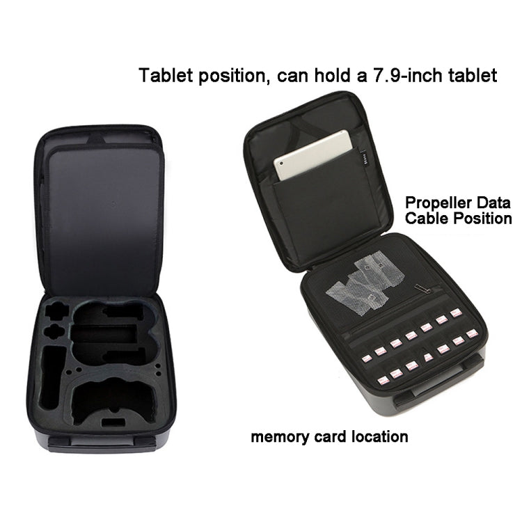 - Large Capacity: Partition storage for lower fuselage, 4 aircraft batteries, joysticks, 2 goggles (not compatible with goggles V2), adapter, data cable blades, 7.9-inch tablet, and more.
