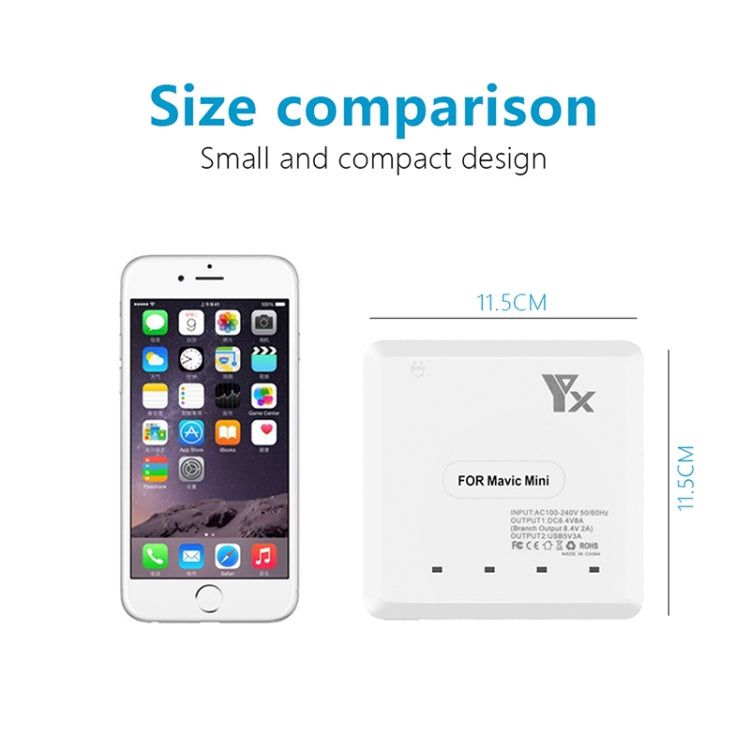 - Multi-functional: This intelligent charger is designed to charge Mavic Mini batteries and controller simultaneously.