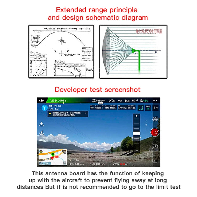 - Increases flight distance by approximately 20%-30% in the same signal interference environment