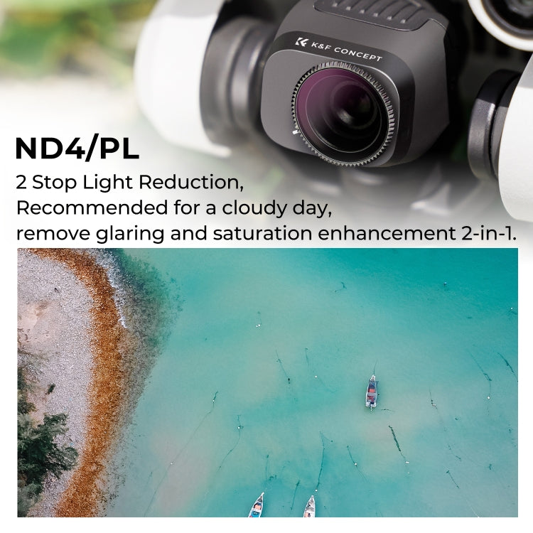 Take your DJI Mini 3 Pro footage to the next level with the K&F Concept KF01.2042 ND4/PL Lens Filter. This 2-in-1 filter combines ND4 and CPL functions to provide versatile light control and color enhancement, giving your aerial shots a professional edge.