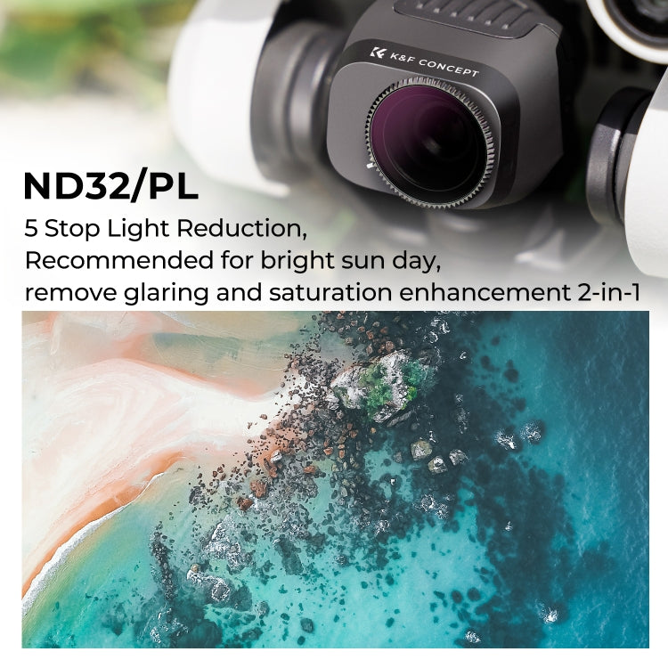 Elevate your aerial photography and videography with the K&F CONCEPT ND32/PL Lens Filter. Capture stunning, true-to-life images while safeguarding your drone's lens.