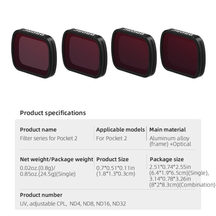 BRDRC ND16 Filter for DJI Pocket 2 Gimbal Accessories