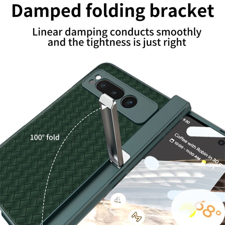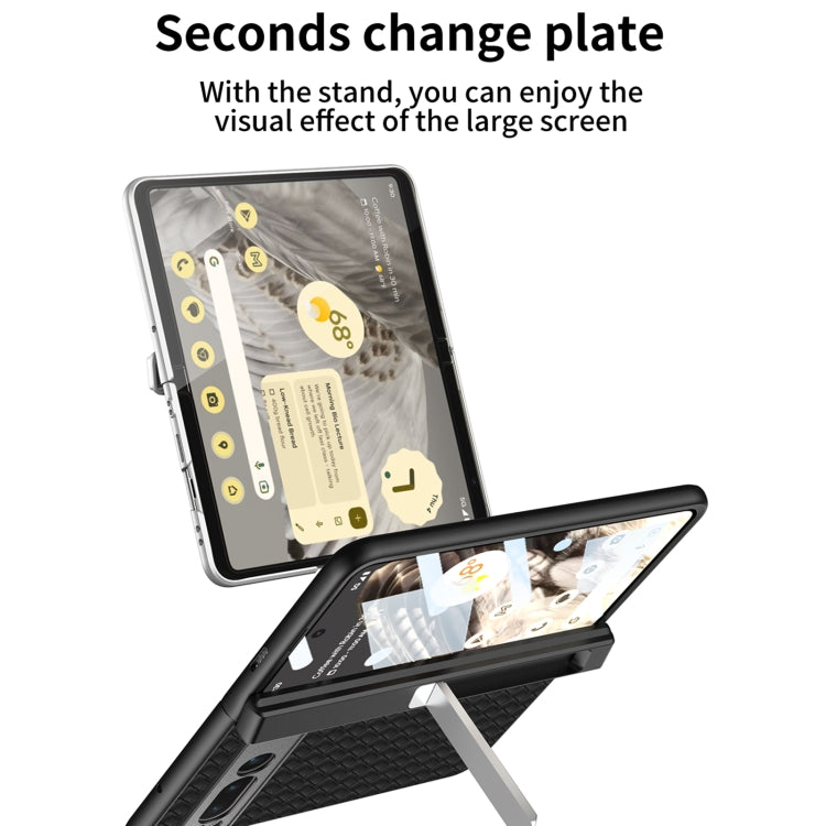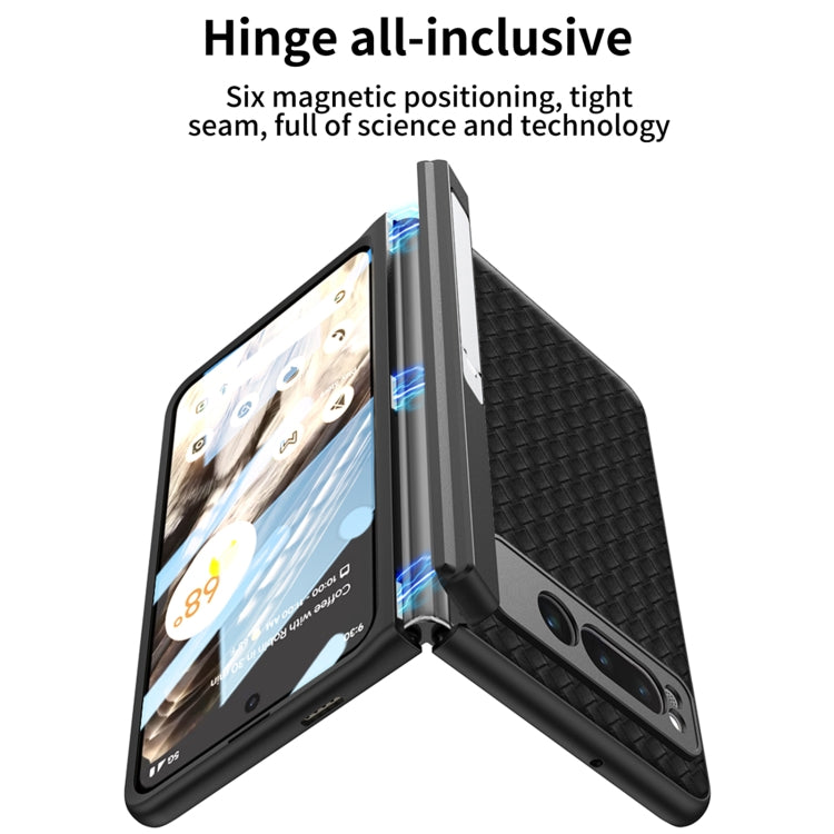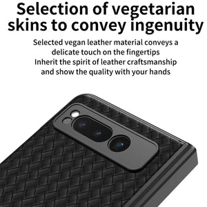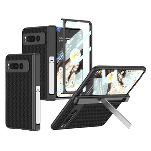 Integrated Woven Folding Hinge Leather Phone Case with Holder for Google Pixel Fold (Black)