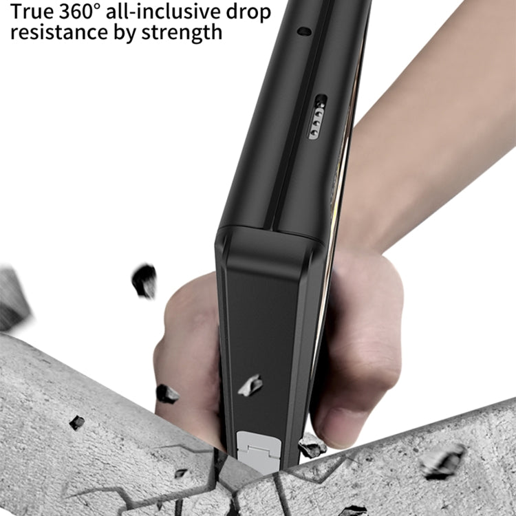 Elevate the protection and style of your Google Pixel Fold with the GKK Integrated Woven Folding Hinge Leather Phone Case with Holder in classic black.