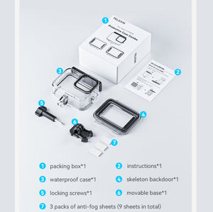 The TELESIN Waterproof Case is designed for versatility. Use the hollow back cover for water sports or land activities with lower waterproof requirements, and switch to the sealed back door for diving below 10 meters.