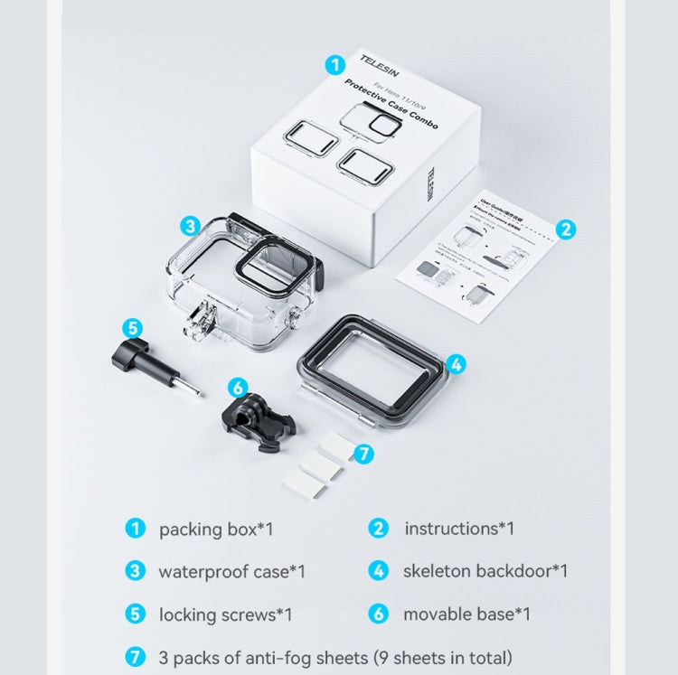 Get ready to explore the depths and capture breathtaking moments with the TELESIN Waterproof Case for GoPro Hero11 Black, HERO10 Black, and HERO9 Black.