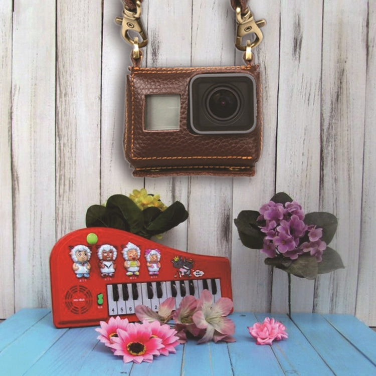 Introducing the For GoPro HERO4 Litchi Texture Genuine Leather Protective Case with Sling in Brown. Elevate the safety and style of your GoPro HERO4 with this protective case crafted from high-quality leather in an artistic litchi texture.