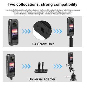 - Features a 1/4 screw port or mounting base for tripod or selfie stick connectivity