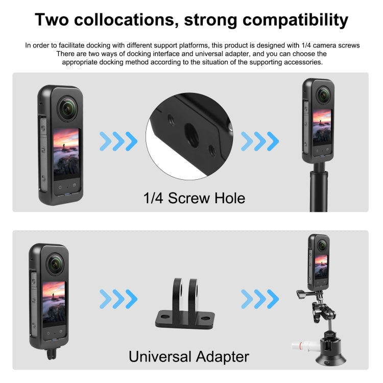 The For Insta360 X3 PULUZ Metal Protective Cage Rig Housing Frame with Silicone Lens Cover in black is tailor-made for Insta360 X3, constructed from aviation aluminum alloy for durability.