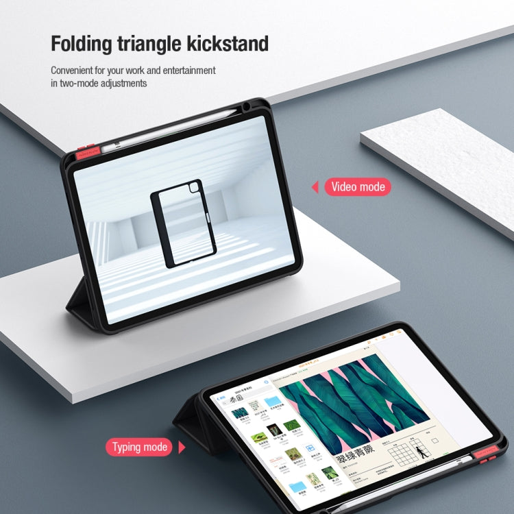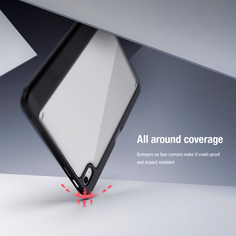 Introducing the NILLKIN PC + TPU Horizontal Flip Leather Tablet Case with Holder for iPad 10th Gen 10.9 2022 in classic black. This sleek and durable case is designed to enhance the functionality of your iPad while providing premium protection.