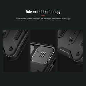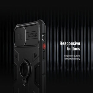 Choose the NILLKIN Shockproof CamShield Armor Protective Case to add both protection and functionality to your iPhone 11.