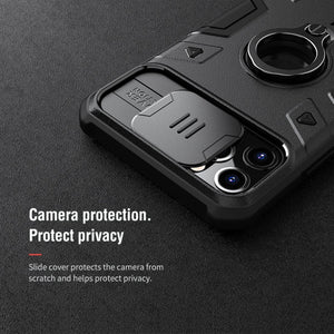 Get the perfect balance of protection and functionality with the NILLKIN Shockproof Cam Shield Armor Protective Case. Its sleek design and hidden ring holder make it a must-have for your iPhone 11 Pro Max.