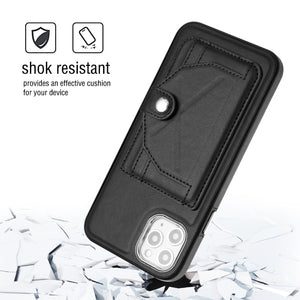 Enhance your iPhone protection and convenience with this shockproof leather phone case designed for the iPhone 11 Pro Max. The sleek black PU leather combined with TPU material provides a durable outer layer.