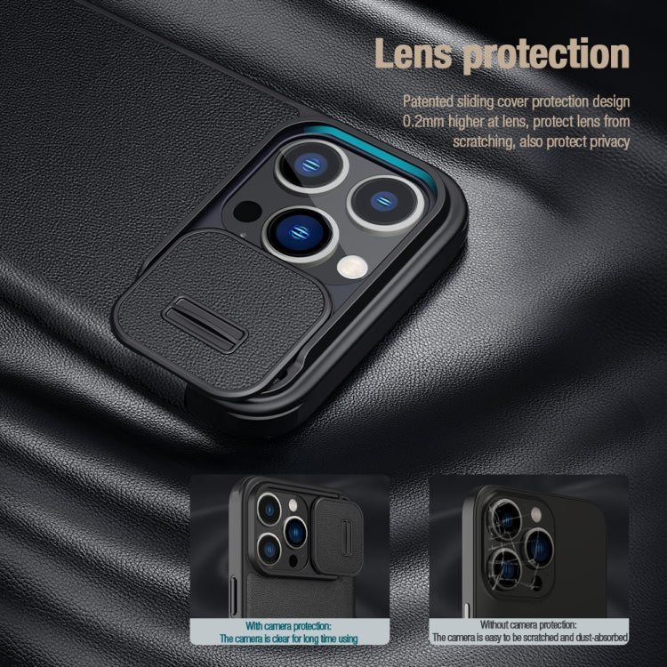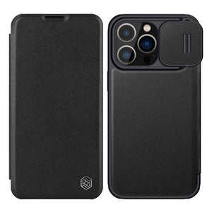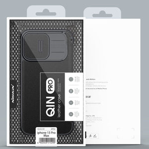 NILLKIN QIN Series Pro Sliding Camera Cover Leather Phone Case for iPhone 13 Pro Max (Black)