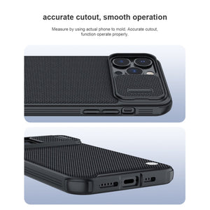 NILLKIN Texture Pro PC + TPU Camshield Phone Protective Case for iPhone 13 Pro Max (Black)